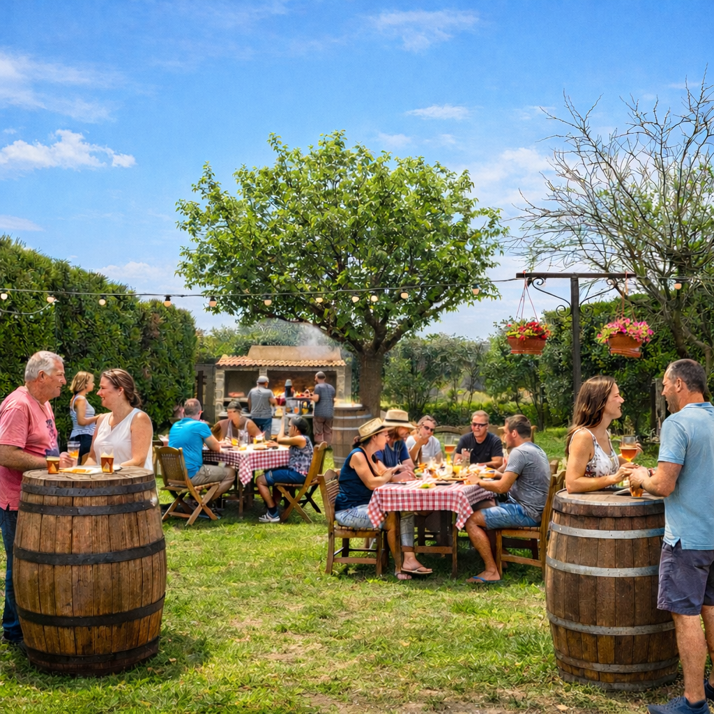Mise à disposition d'un espace privatisé pour le repas, avec chambre froide, barbecue...