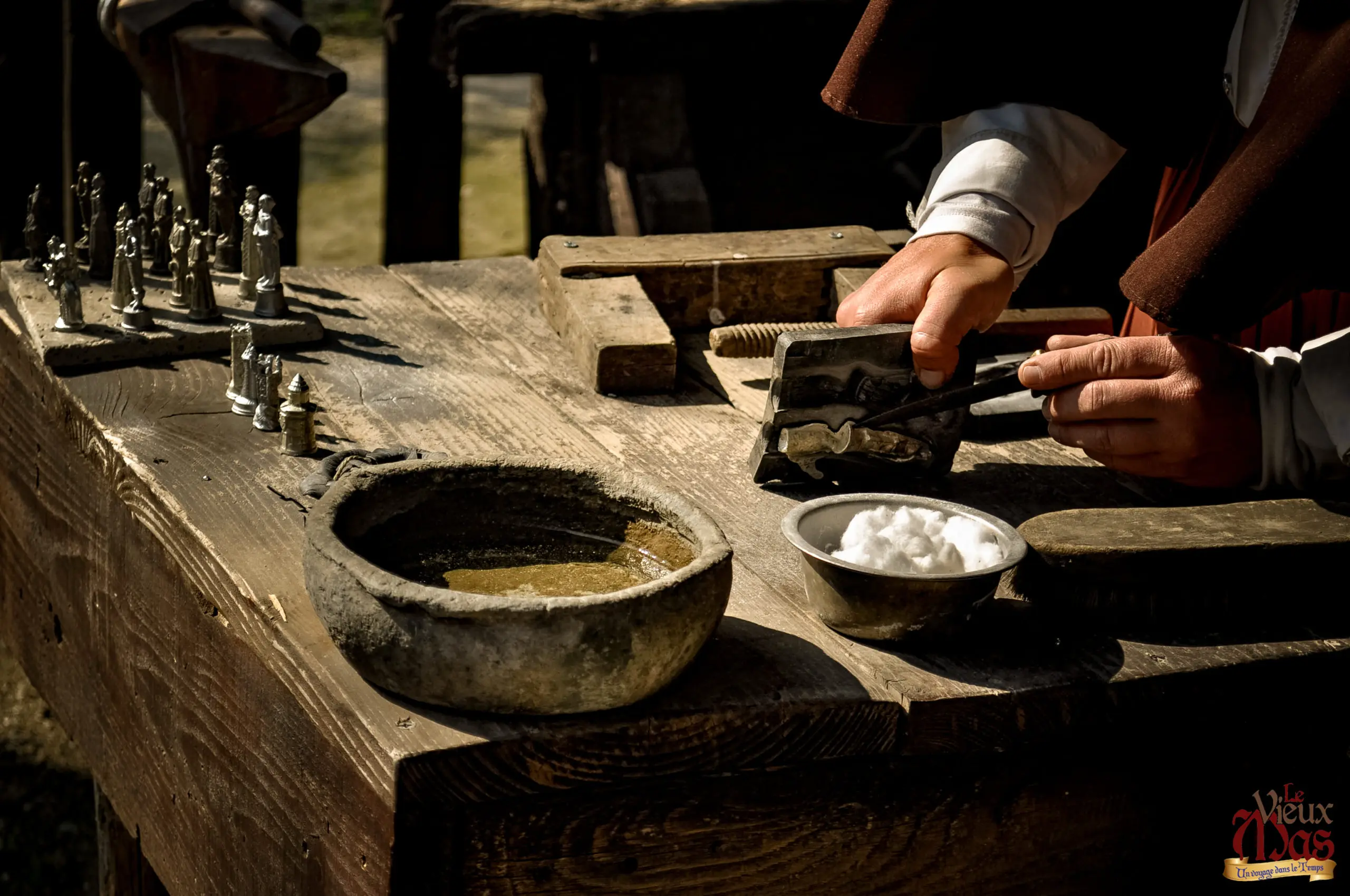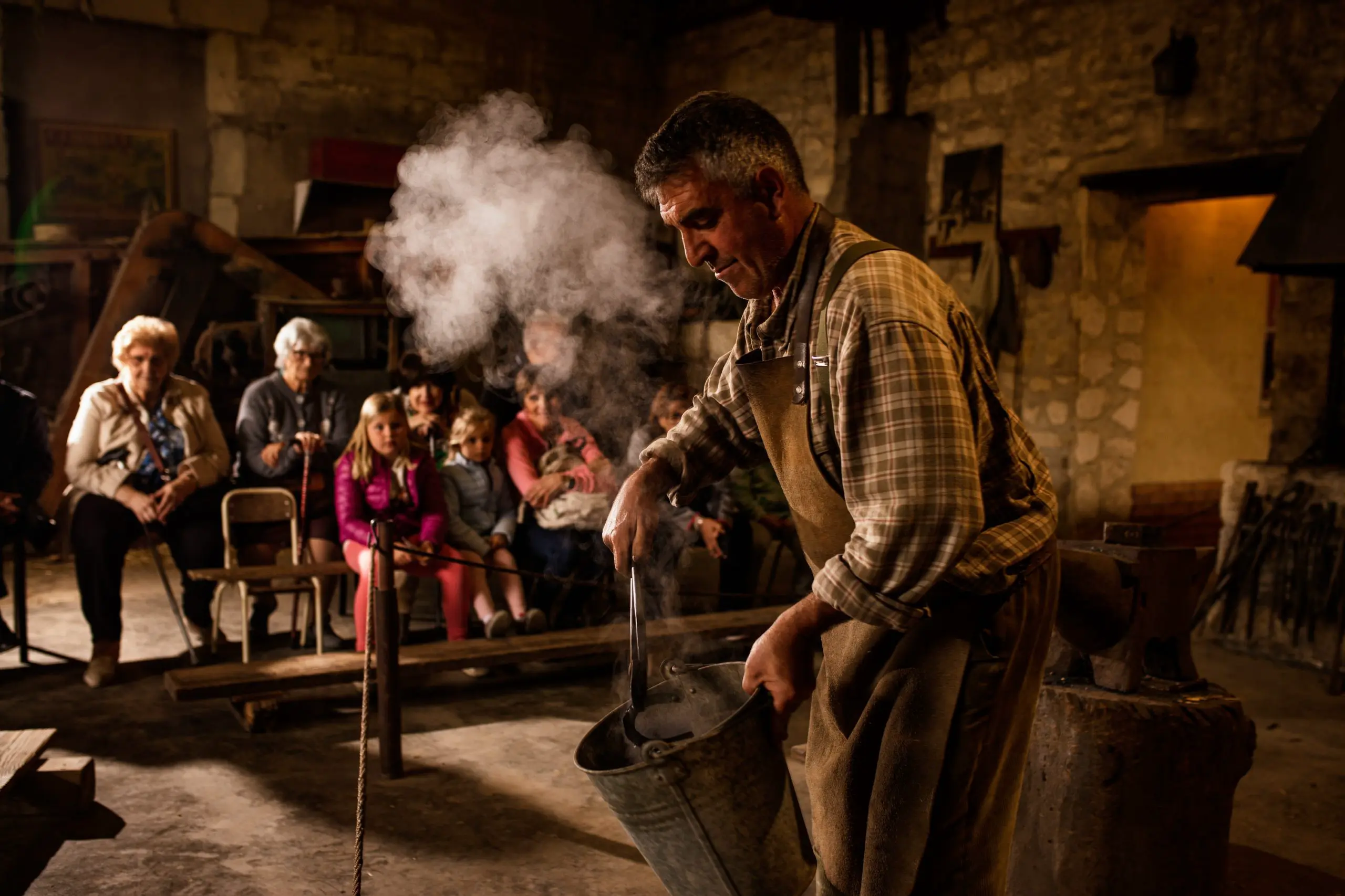 Certains reprennent vie et au détour d’un chemin, vous pourrez rencontrer le fondeur, tourneur sur bois, monnayeur, cordier ou encore le forgeron, véritables passionnés ils auront à cœur de transmettre leur savoir-faire et leur passion et vous montreront les gestes ancestraux tel qu’ils étaient alors en 1900.