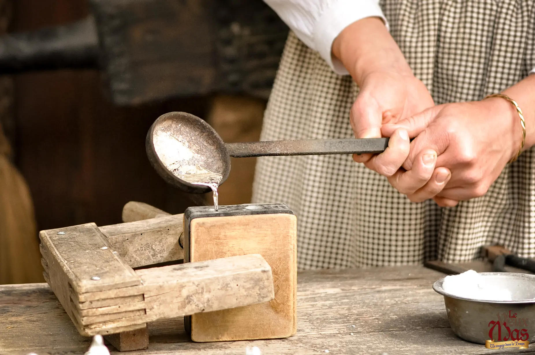 Ici une barre d’étain qui une fois fondu dans son moule se transforme alors en figurine…